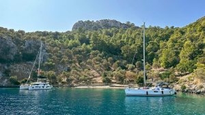 Instead of the crowded Cleopatra Bay, we anchor in its unreachable private side.