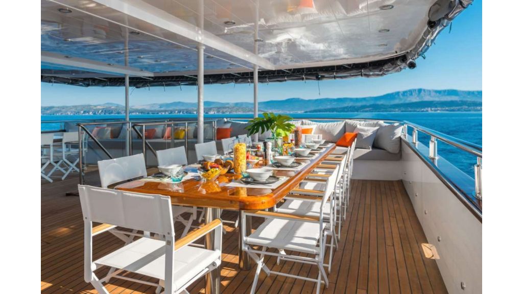 This yacht is a 12 cabin 48,30 m 24 guest luxery motoryacht designed for elite charter guests seeking absolute comfort, elegance and discretion. With spacious cabins refined interious anfd large outdoor living areas,