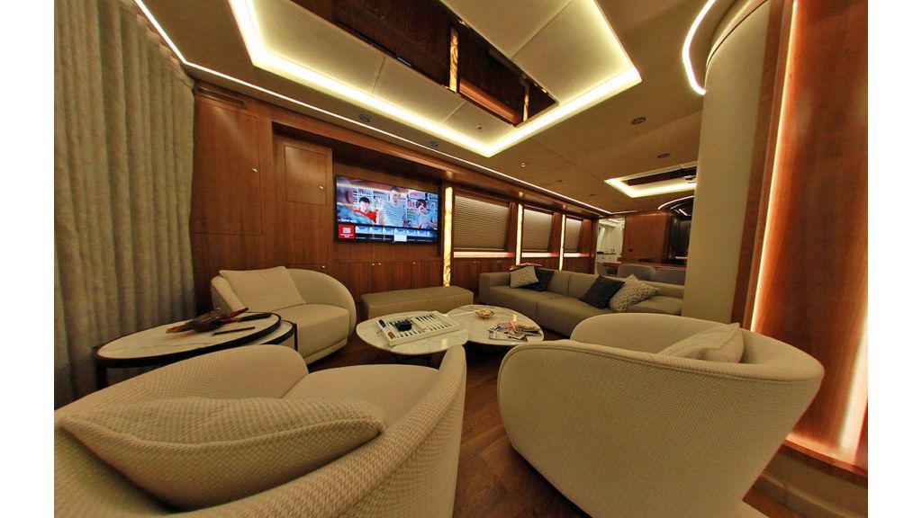With her sleek lines and balanced proportions, ARESTEAS presents a powerful yet elegant profile on the water. The spacious decks are designed for relaxation and socializing, featuring comfortable seating areas, shaded lounges, and open spaces ideal for sunbathing. The harmonious blend of contemporary design and classic maritime elements creates a timeless atmosphere throughout the yacht.