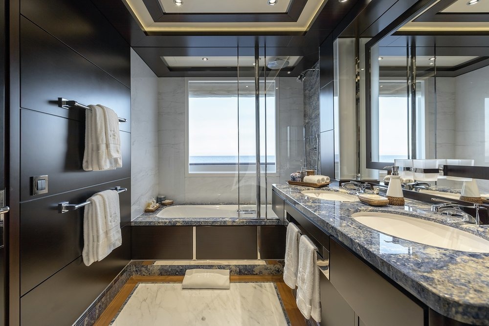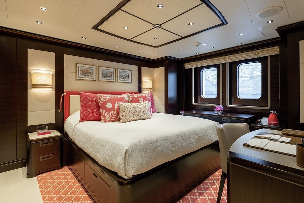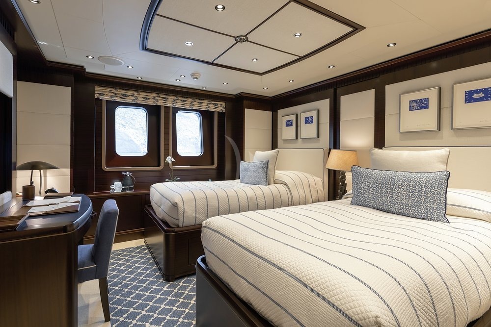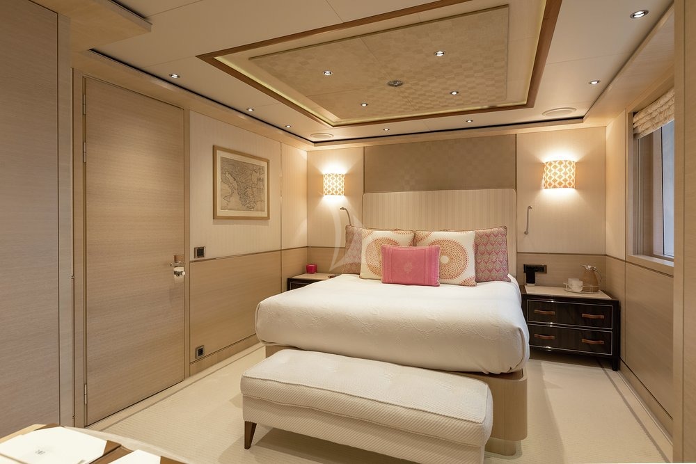 Built in 2010, Baton Rouge offers guest accommodation for up to 12 guests in 7 suites comprising a master suite, two VIP cabins and two double cabins. The master suite incorporates its own study and dressing room. There are 9 beds in total, including 4 queen, 5 doubles and 2 convertible. She is also capable of carrying up to 18 crew onboard to ensure a relaxed luxury yacht charter experience.