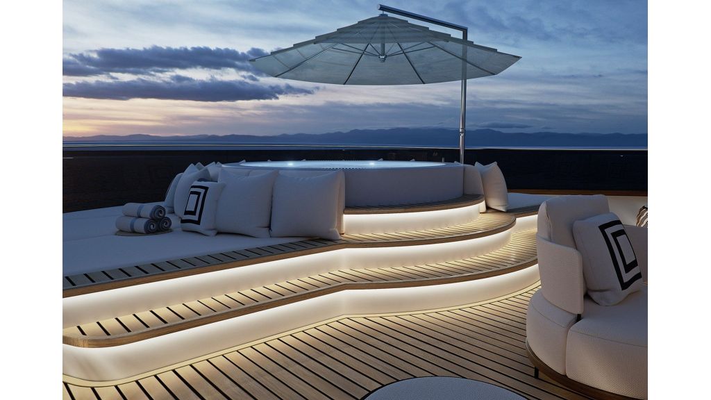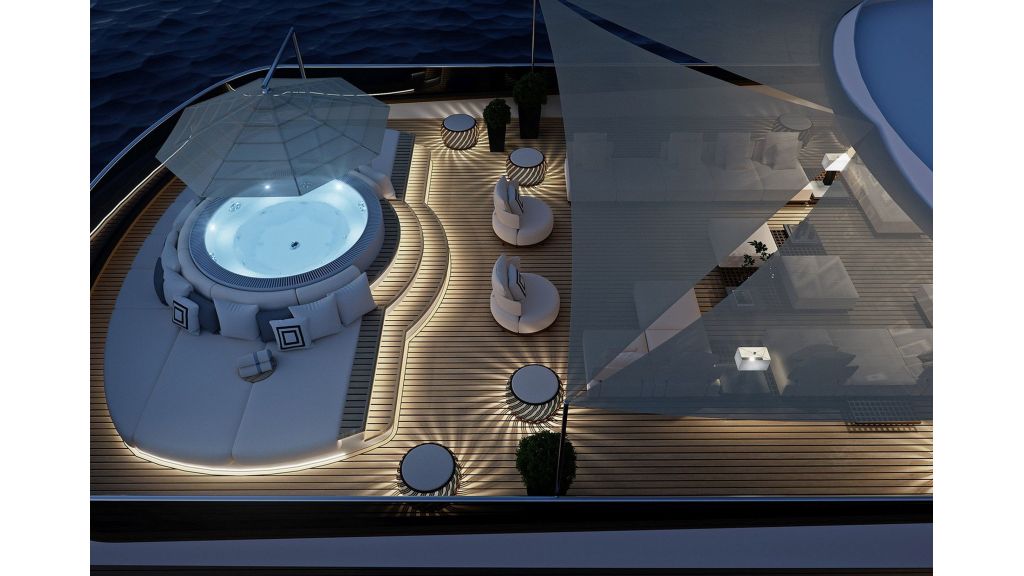 Black Swan offers exceptional outdoor living areas for sunbathing, relaxing and socializing. The expansive deck features lounges, dining areas and a beautifully designed flybridge equipped with a jacuzzi, bar area and sunbeds. The large stern platform provides easy access to the sea and supports various water sports activities.