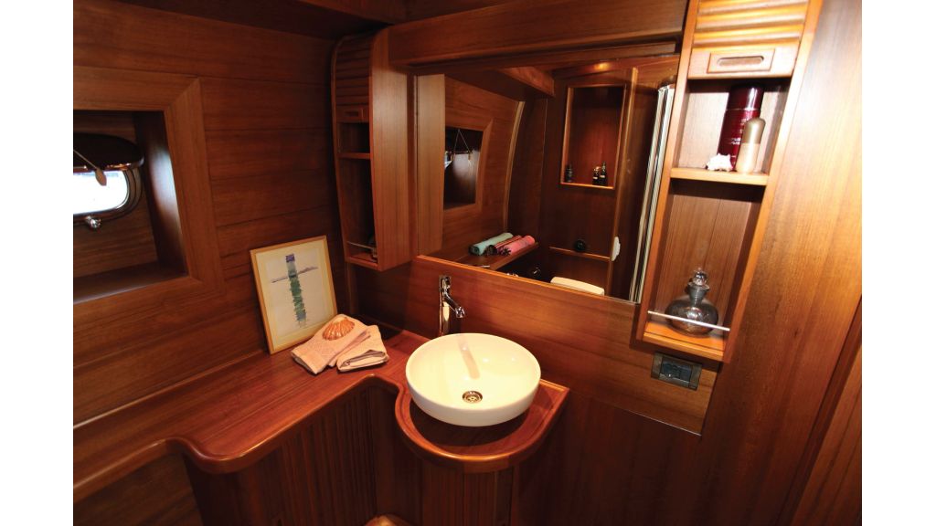 For those who wish to make the most of the crystal-clear waters, the yacht provides a swimming ladder and an outdoor deck shower.