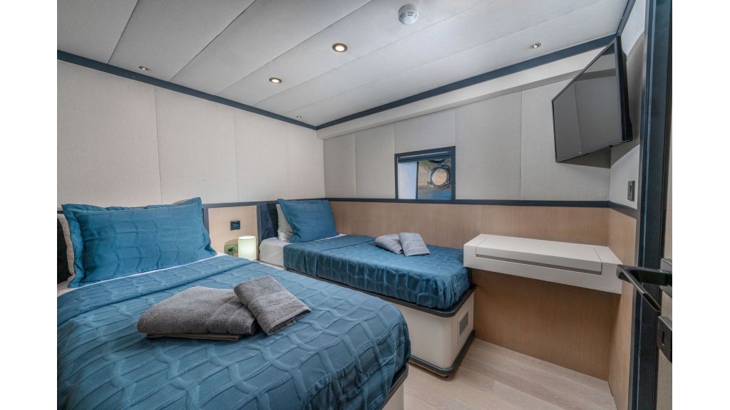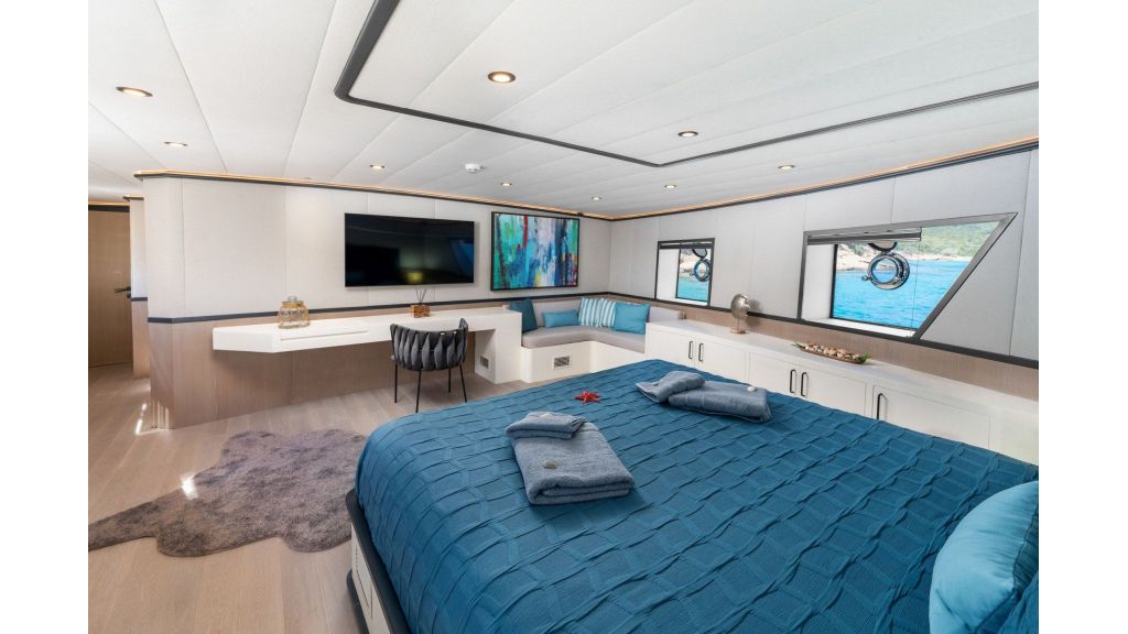 is a luxury exploration yacht with a length of 30 meters and a width of 7.2 meters. it can accommodate a total of 12 guests in 5 magnificent cabins. The cabin layout offers great comfort with 1 main bedroom and 4 double cabins.