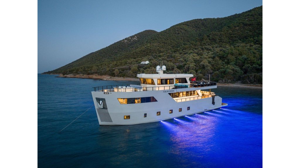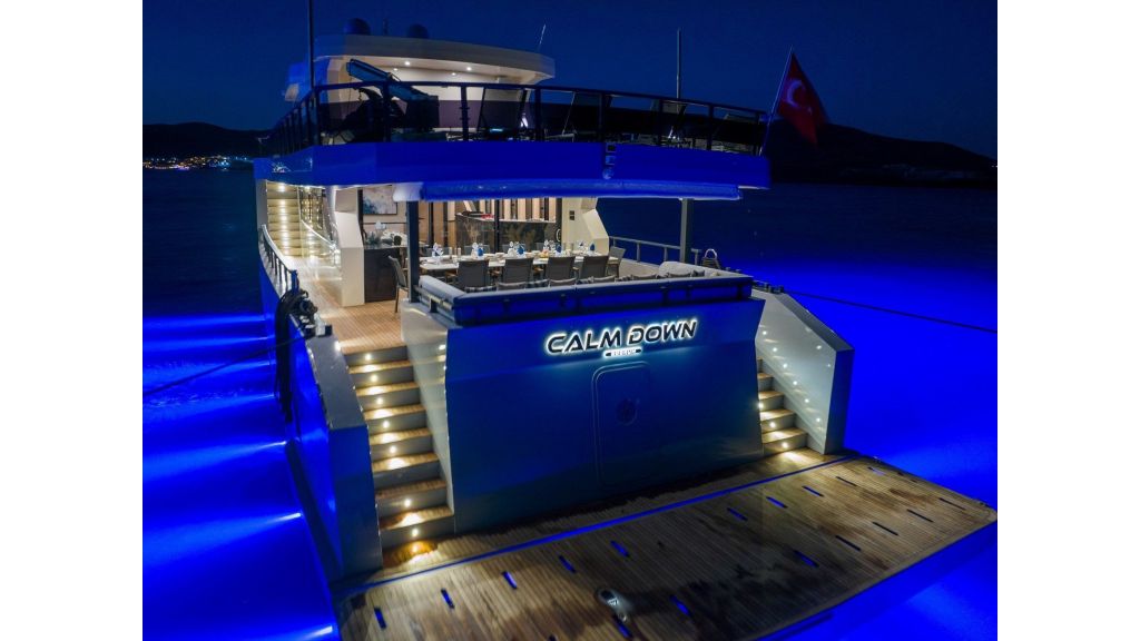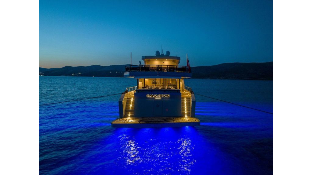 CALM DOWN is a 6 cabin 30 m 12 guest luxery motoryacht designed for elite charter guests seeking absolute comfort, elegance and discretion. With spacious cabins refined interious anfd large outdoor living areas,