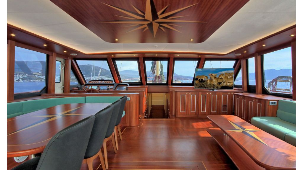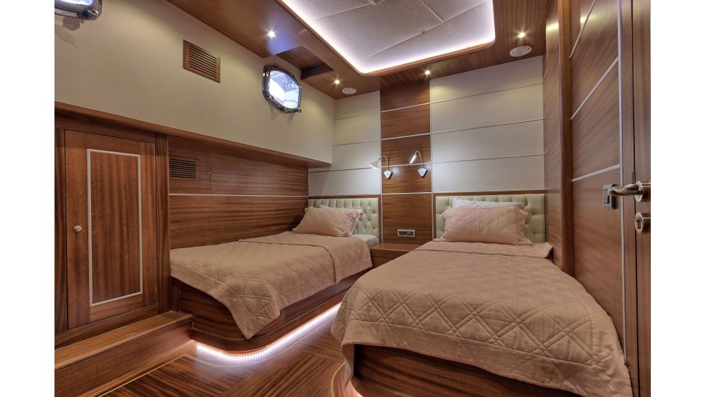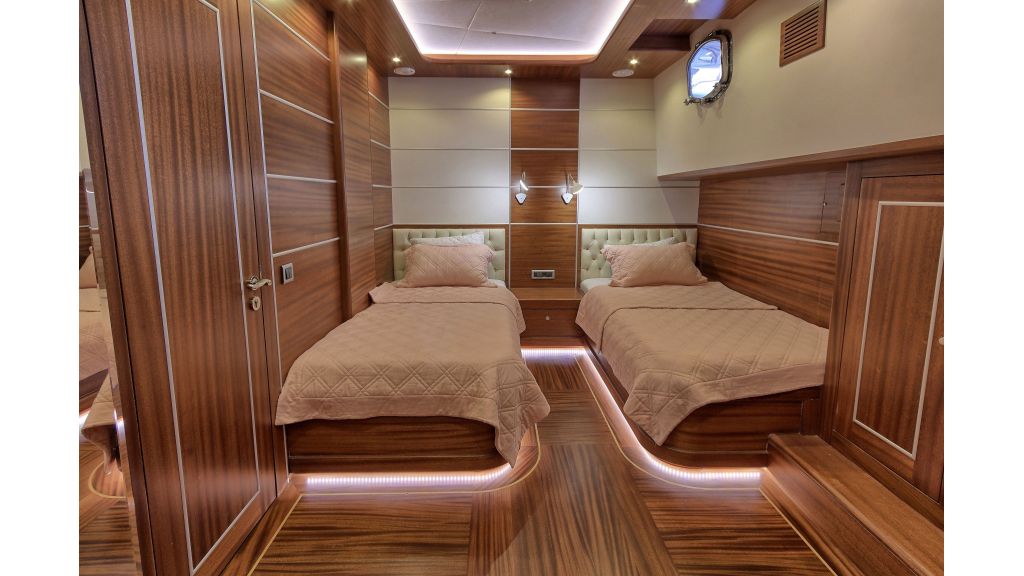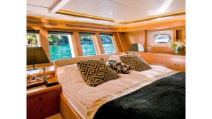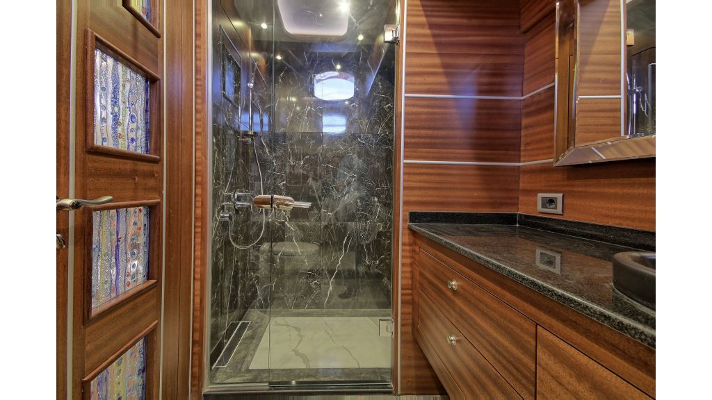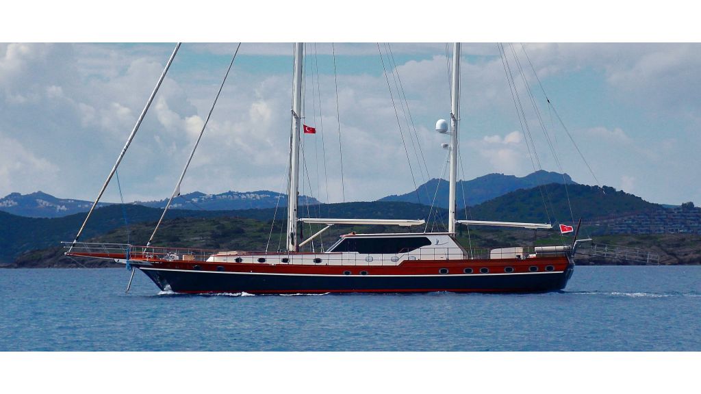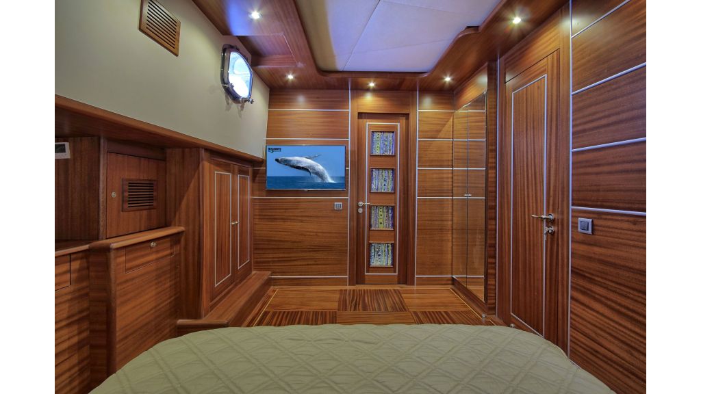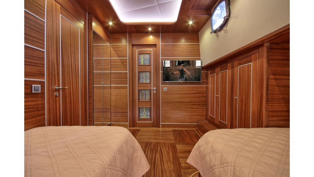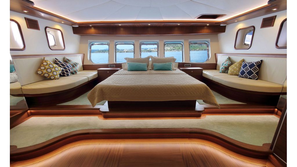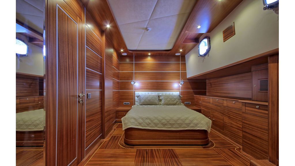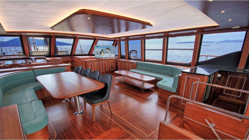 she is 41 meters long epoxy laminated mahogany sculpture and full of amenities. Only 5 cabins for 10 guests in such large sailing yacht that is aimed to offer utmost luxury to her guests.
