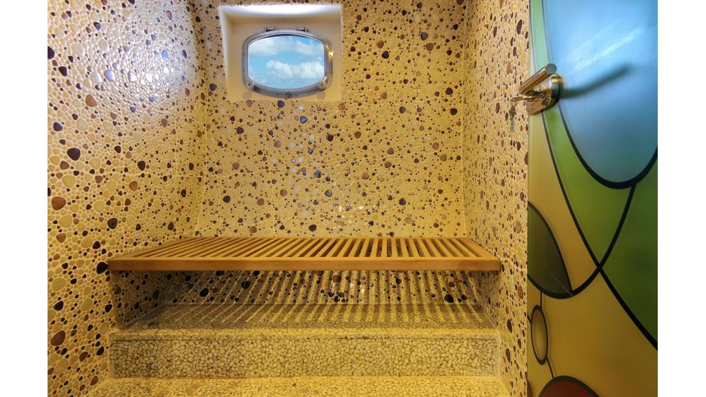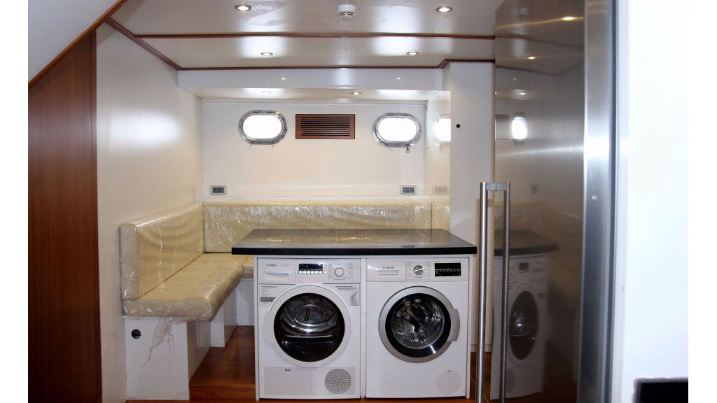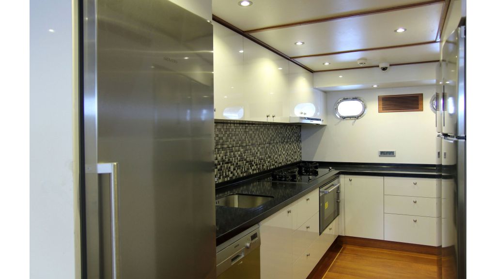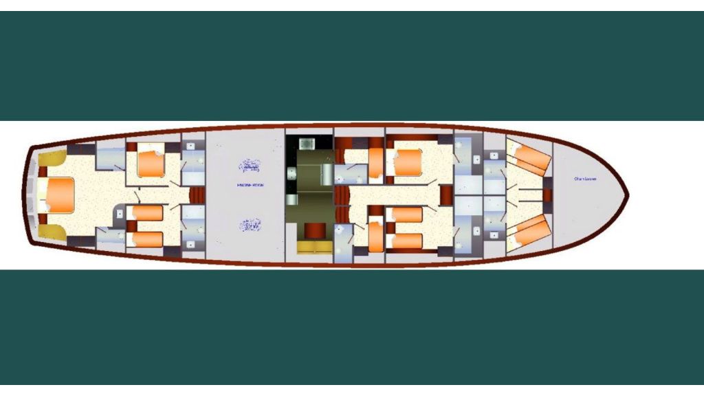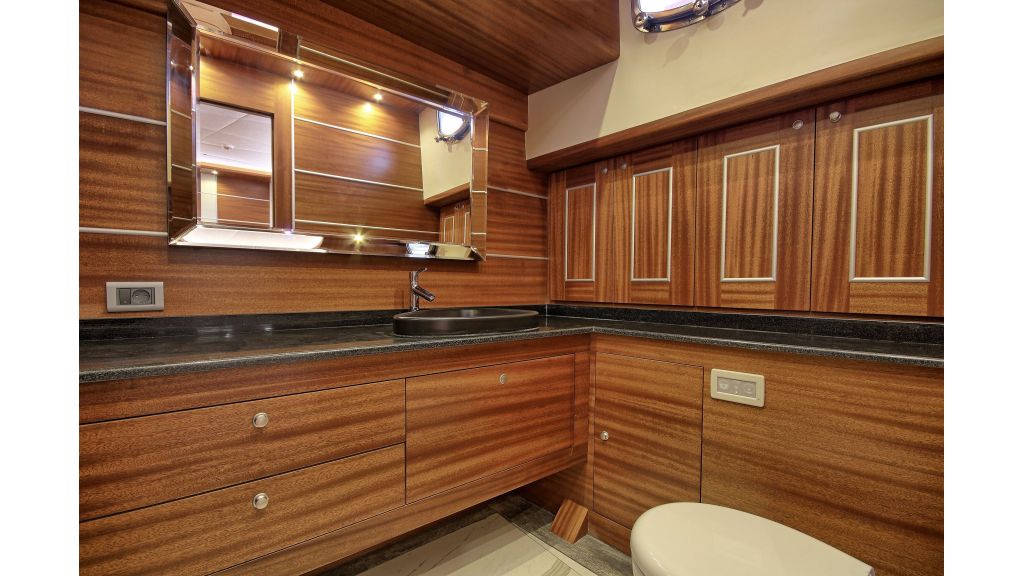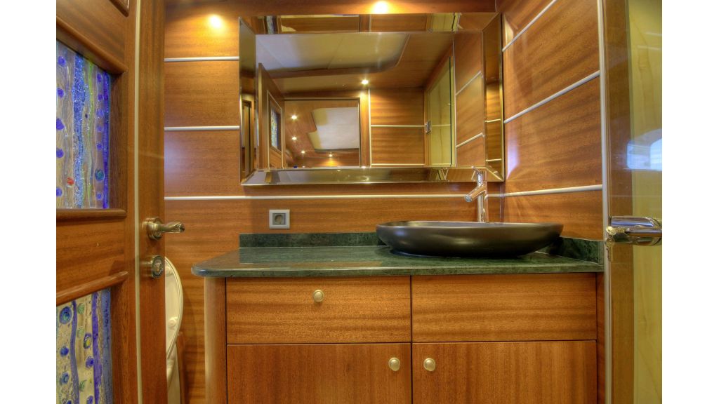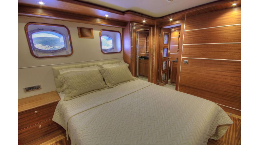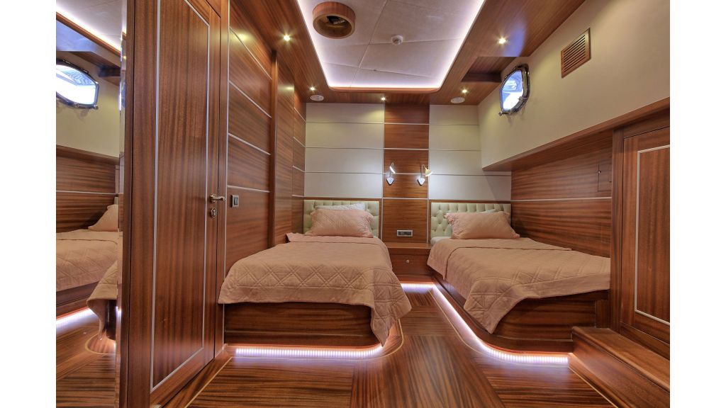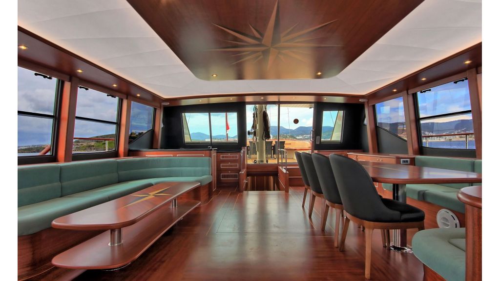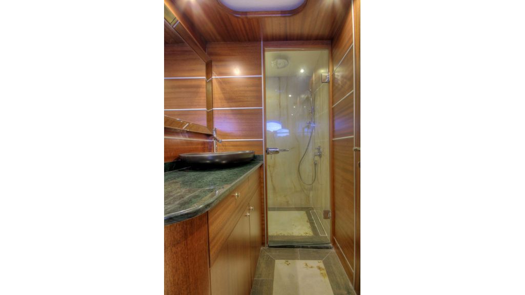 she is 41 meters long epoxy laminated mahogany sculpture and full of amenities. Only 5 cabins for 10 guests in such large sailing yacht that is aimed to offer utmost luxury to her guests.