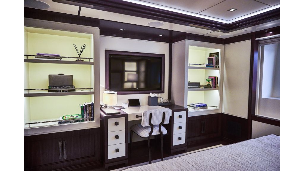 A spacious and cozy lounge is located on the main deck and offers stunning sea views. The sky lounge on the upper deck is equipped with various relaxation areas and there is a cocktail table perfect for game nights.