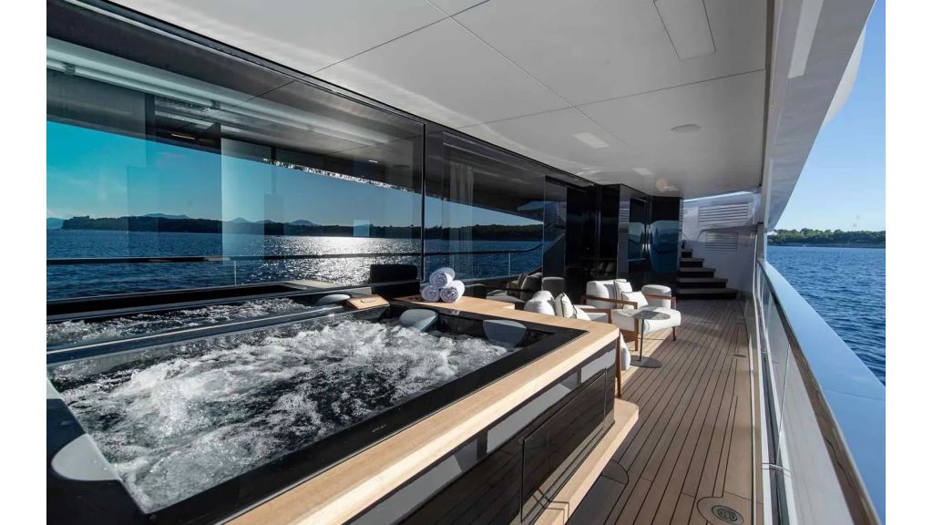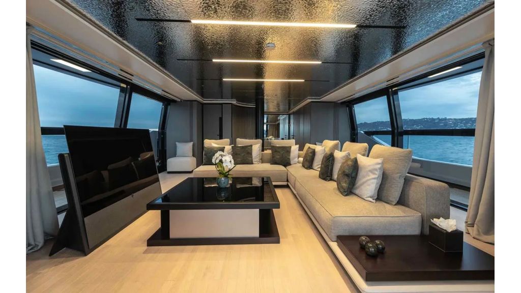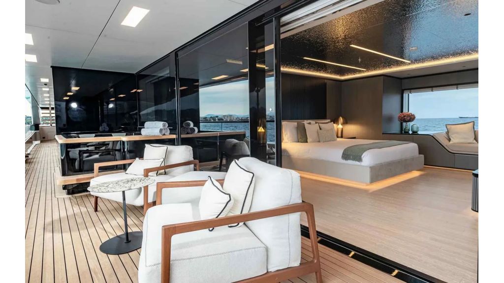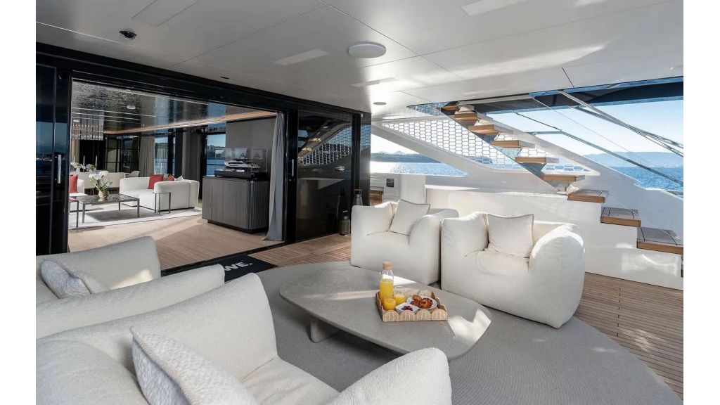 LOEWE features strong yet elegant exterior lines, creating a timeless and commanding presence at sea. Her spacious decks and refined proportions enhance both aesthetics and functionality. The interior design reflects contemporary luxury, with bright tones, natural light, and premium materials that create an open, sophisticated, and welcoming atmosphere throughout the yacht.