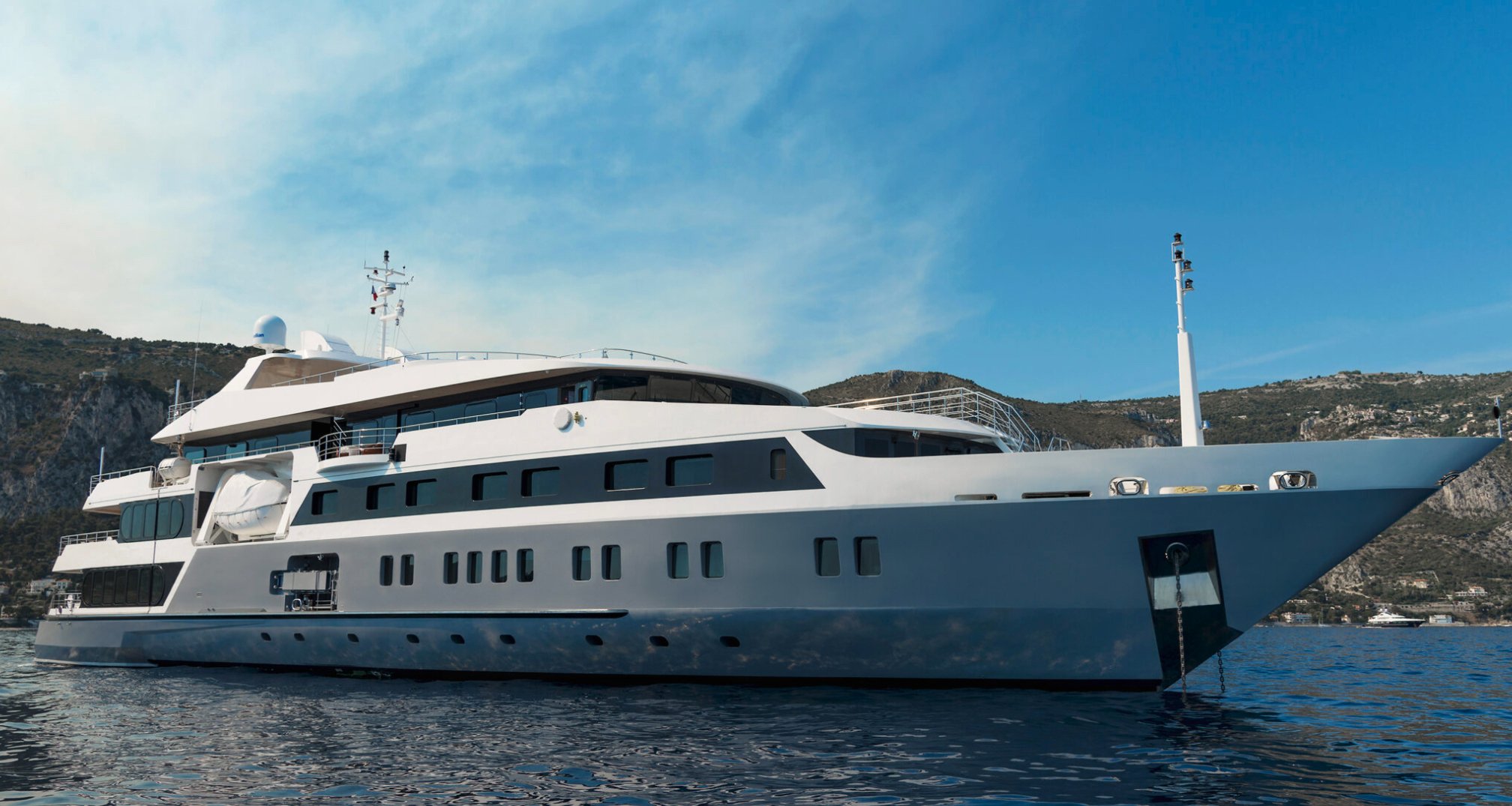 Built with a aluminium hull and aluminium superstructure, she offers greater on-board space and is more stable when at anchor thanks to her full-displacement hull.