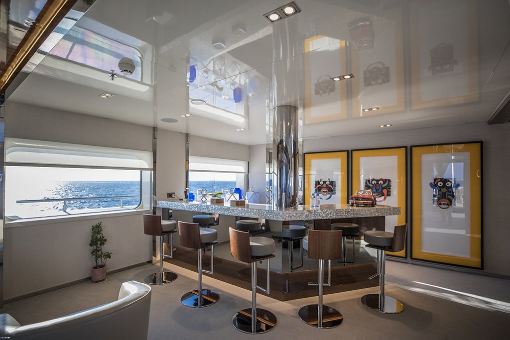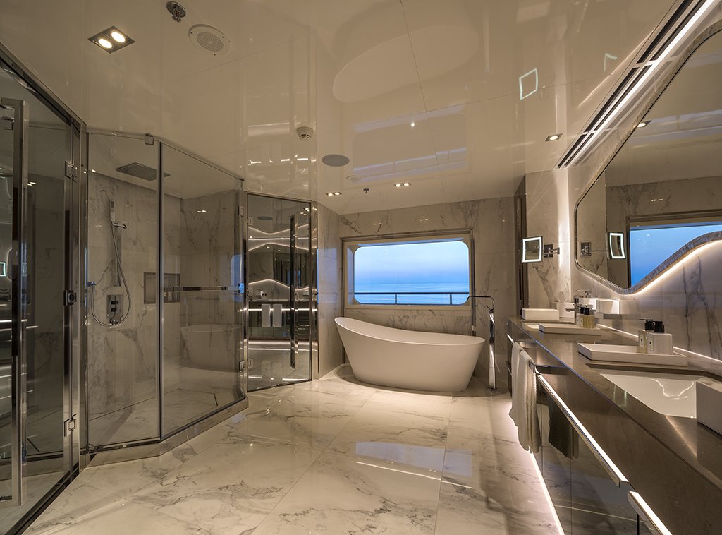 Powered by twin MTU engines, she comfortably cruises at 12 knots, reaches a maximum speed of 15 knots with a range of up to 1,539 nautical miles at cruising speed. Her low draft of 2.1m/6’11” makes her primed for accessing shallow areas and cruising close to the shorelines. An advanced stabilisation system on board reduces the side-to-side roll of the yacht and promises guests exceptional comfort levels at anchor or when underway.