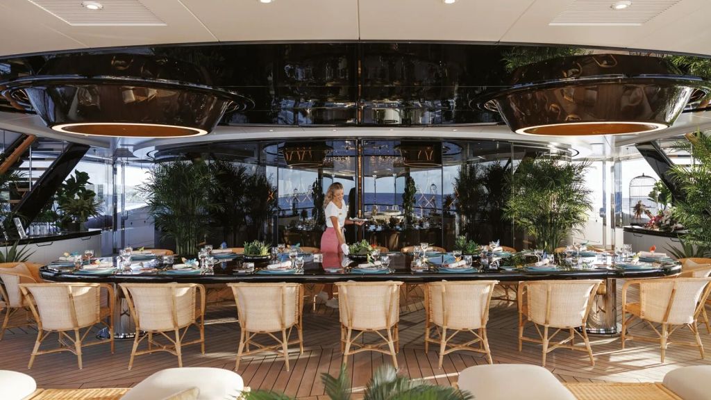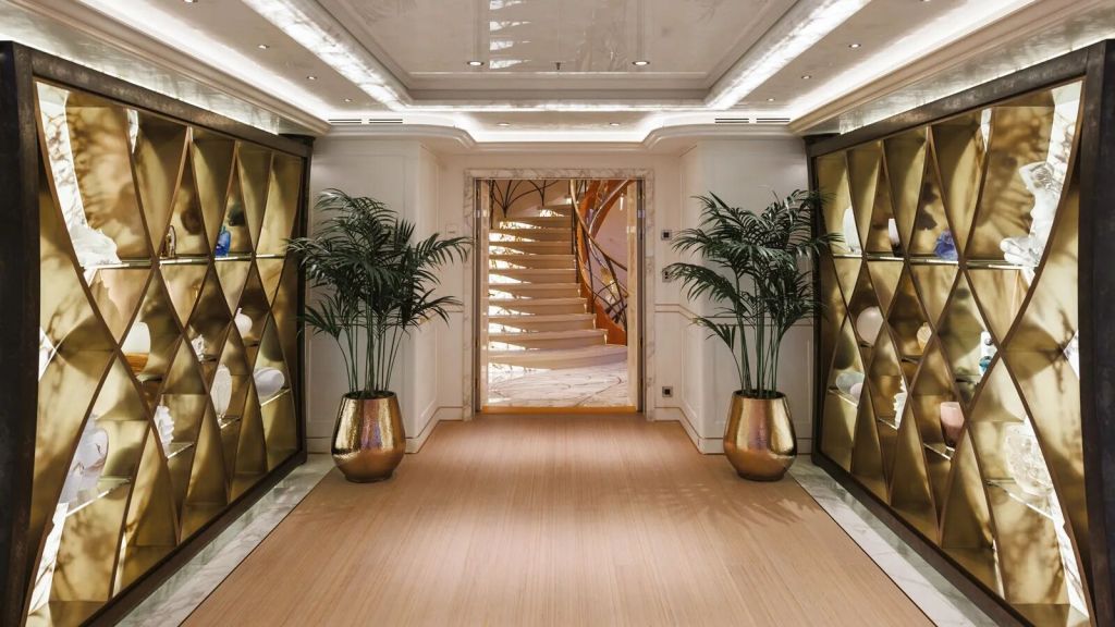 Designed with the highest level of luxury in mind, AHPO’s interiors are adorned with modern furnishings, spacious layouts, and premium materials. The yacht features expansive lounges, fine dining areas, a state-of-the-art spa, and a fully equipped fitness center, all catering to the most discerning guests.