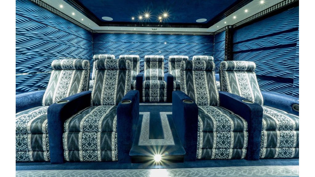 For indoor entertainment, guests can relax in the private cinema, designed for immersive viewing experiences.