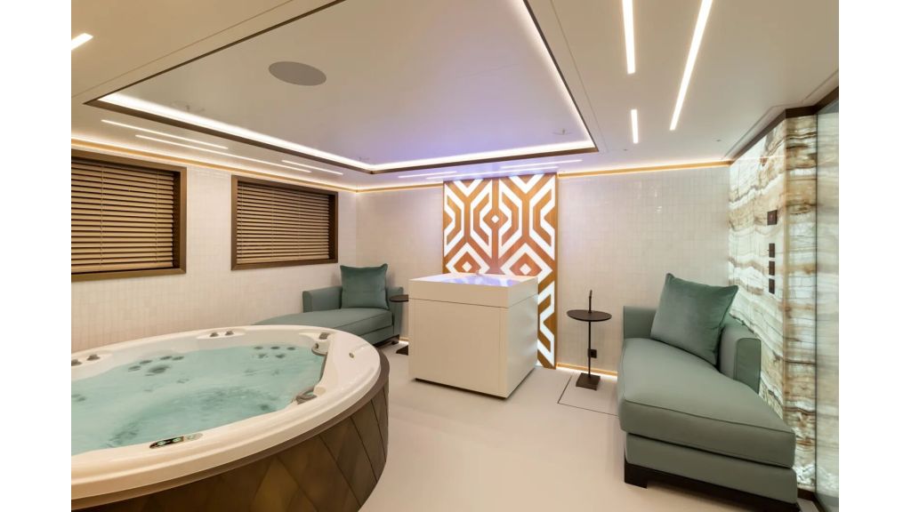 This magnificent yacht is equipped with world-class amenities to provide an exceptional onboard experience. Guests can indulge in the jacuzzi, massage room, spa, sauna, steam room, and a fully equipped gym. Additional highlights include a helicopter hangar, submarine garage, swimming platform, and state-of-the-art stabilization systems for smooth sailing. La Datcha also offers top-tier entertainment options with Wi-Fi, video-on-demand, iPod docking, satellite TV, and gaming consoles. Every detail has been meticulously designed to ensure a seamless blend of luxury and functionality.