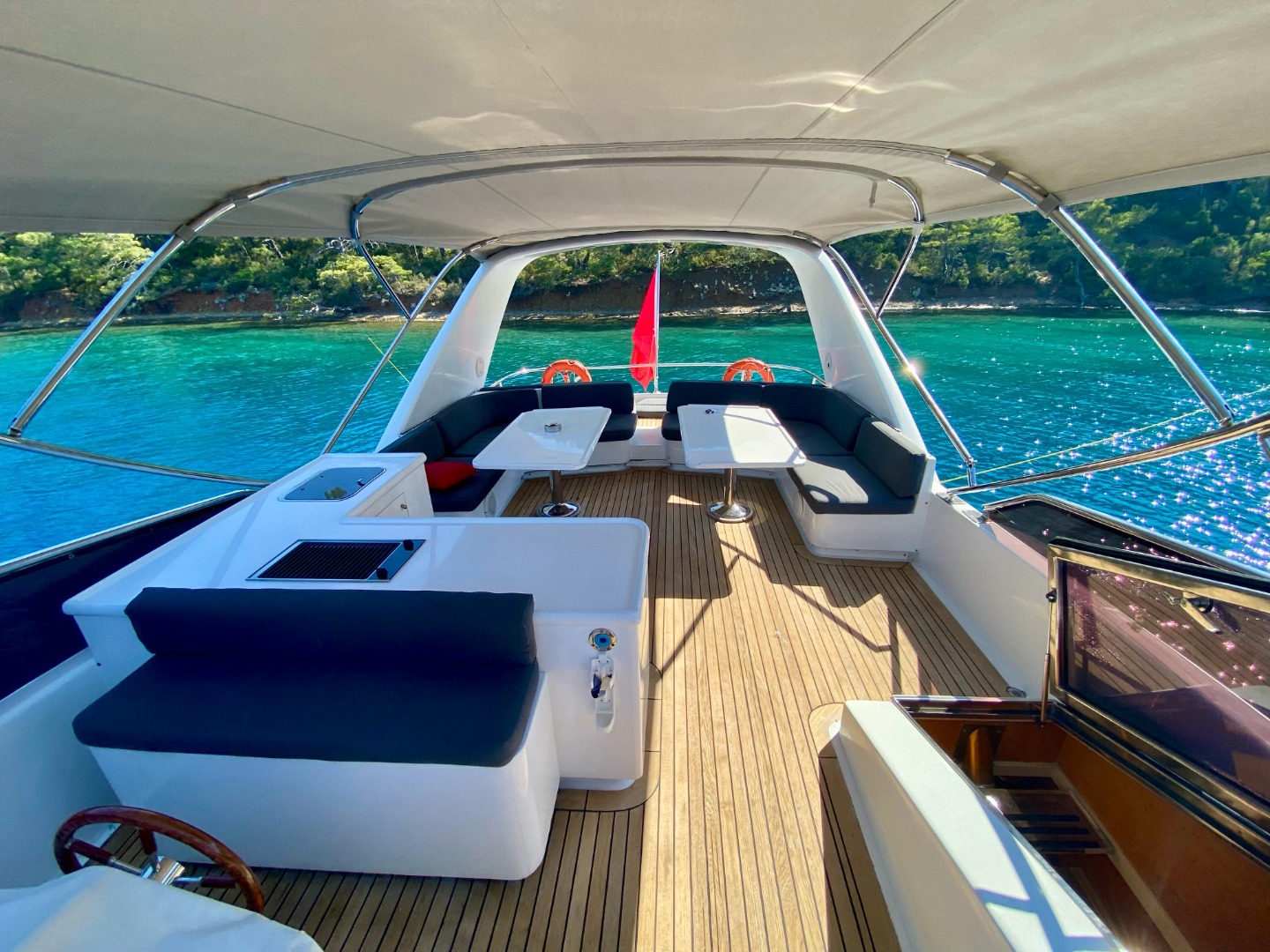 • Arka Güverte: Aileniz ve dostlarınızla yemeklerinizi rahatça yiyebileceğiniz geniş bir oturma alanı.