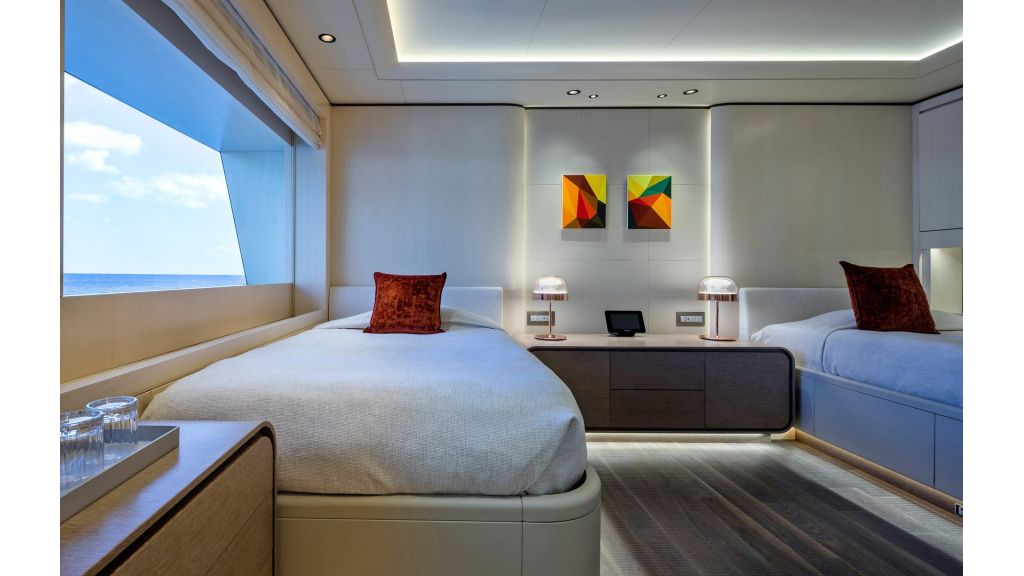 O’Pari comfortably accommodates up to 12 guests in 14 lavish en-suite cabins, thoughtfully designed to provide both intimacy and style. The generous cabin layout ensures that guests experience the utmost privacy.