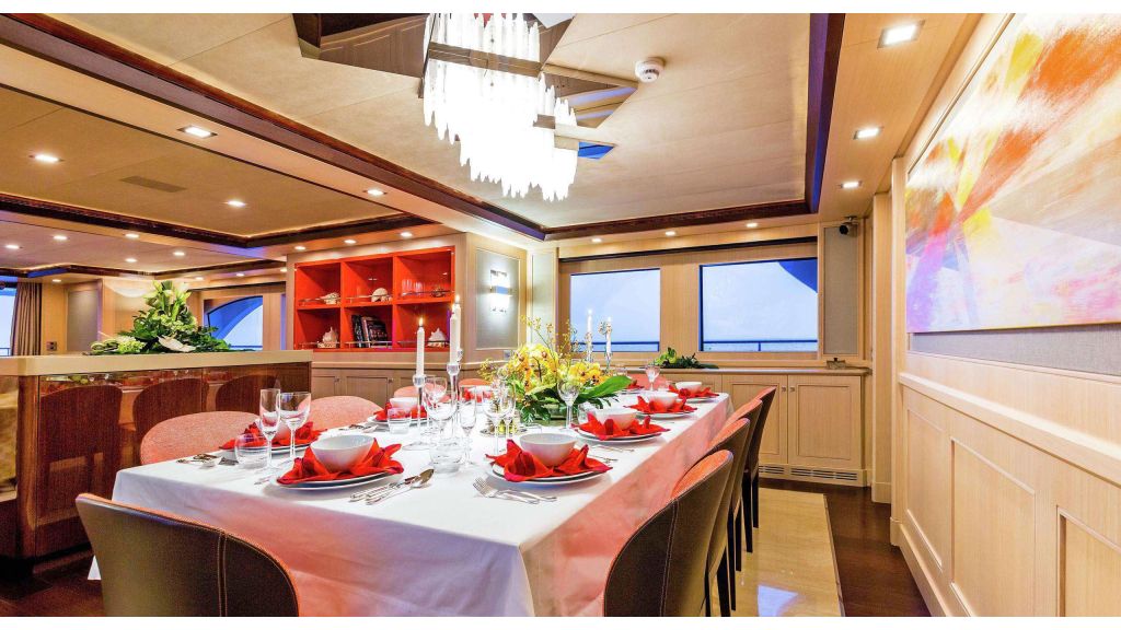 Polaris has been designed to comfortably accommodate up to 11 guests in 5 suites comprising one cabin that can operate as twin or double. The supremely spacious full beam master suite features extensive storage space provided by the dressing room benefits from a his and her bathroom. She is also capable of carrying up to 9 crew onboard to ensure a relaxed luxury yacht experience.