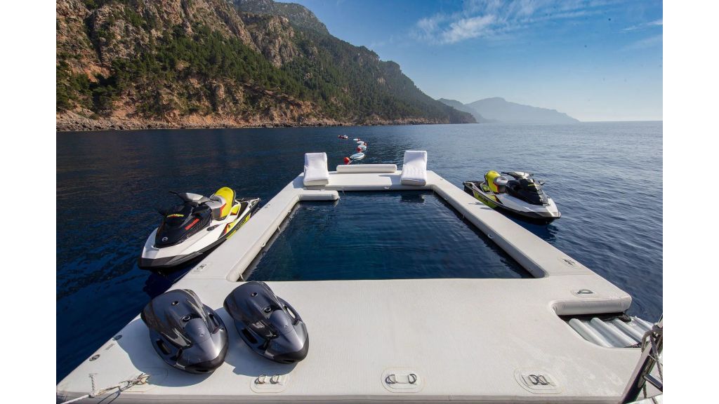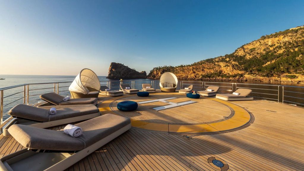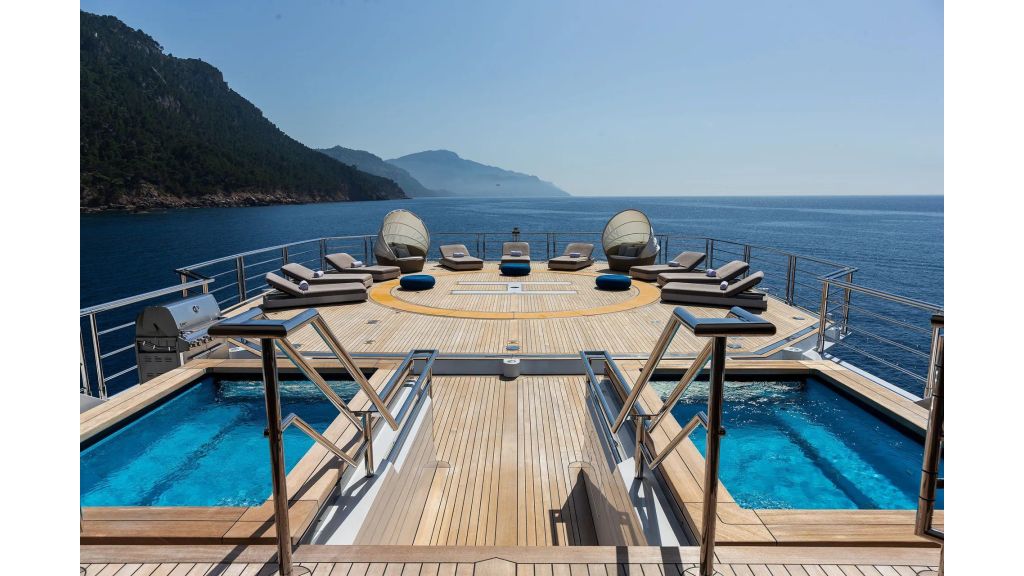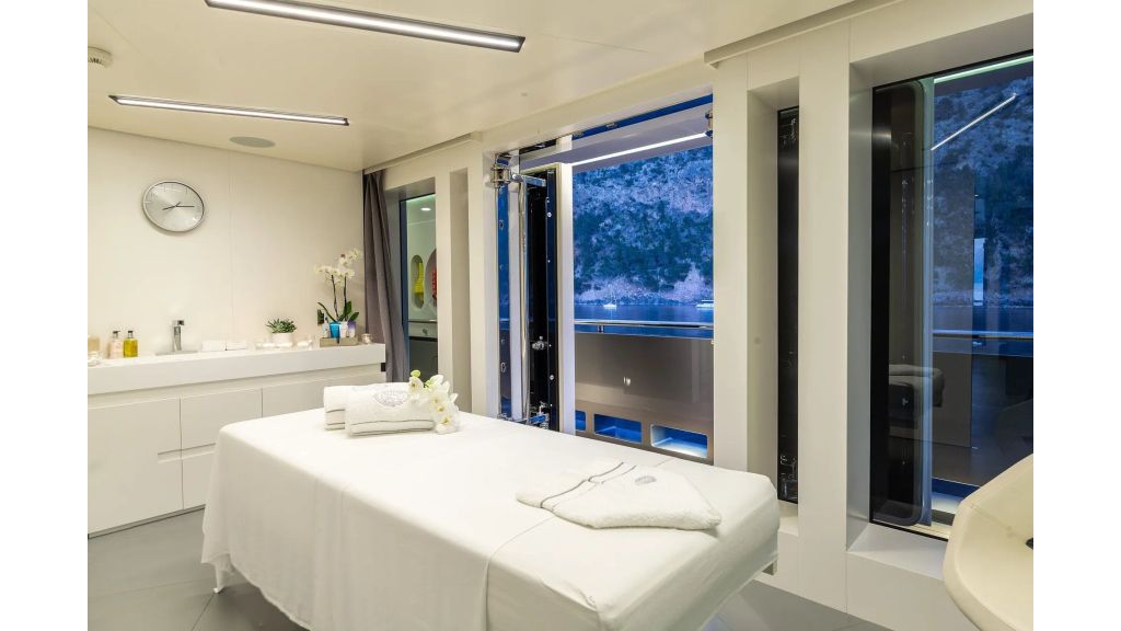 Stella Maris is designed for both relaxation and adventure. The large Beach Club offers easy access to water activities, complete with seabobs, jetskis, paddle boards, kayaks, and diving gear. The yacht also features a fully equipped gym, a dedicated spa with a whirlpool jacuzzi, sauna, steam room, and hammam, ensuring guests can unwind in total serenity.